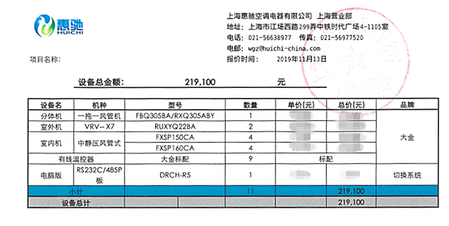 使用設備:大金中央空調VRV-X系列多聯機