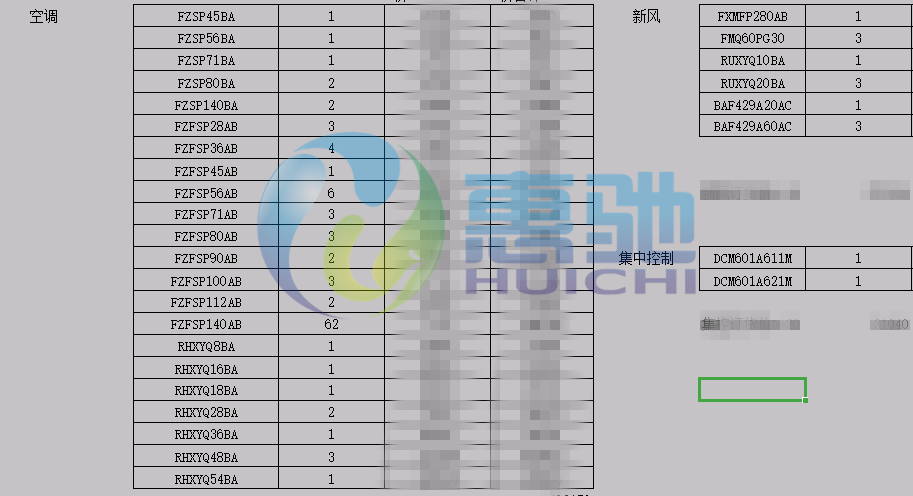 二期1F部分空調(diào)設(shè)備配置表