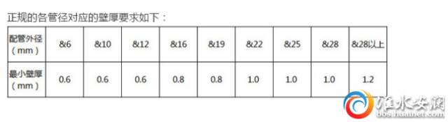 正規的各管徑對應的壁厚要求如下: