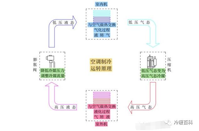 當冷媒經過膨脹閥之前是屬于高溫高壓狀態,而經過后屬于低溫低壓狀態。這個是VRV系統中非常重要的概念,也是制冷原理的基本,請務必要記住以下兩點: