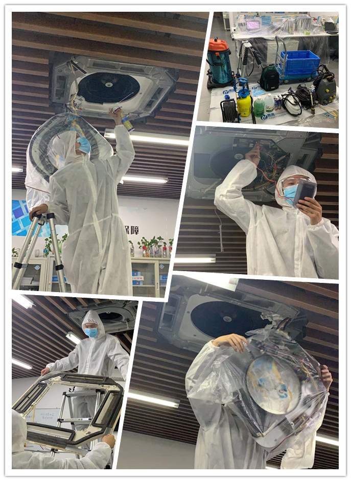 新型冠狀病毒的主要傳播途徑是通過呼吸道飛沫傳播,當(dāng)帶病毒的飛沫附著在通風(fēng)系統(tǒng)內(nèi)的顆粒物中傳播開來,污染室內(nèi)空氣,就會大大提高室內(nèi)人員感染病毒的風(fēng)險,導(dǎo)致肺炎疫情加劇。因此對中央空調(diào)進(jìn)行有效的清洗、消毒迫在眉睫。